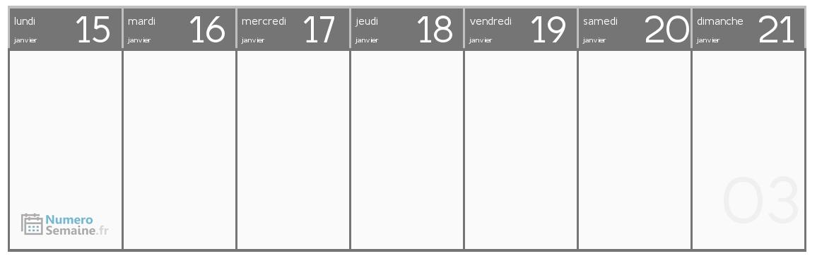 La semaine 03 de 2029 contient les dates suivantes :