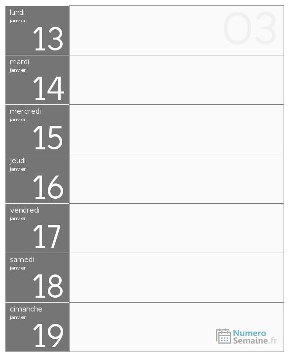 Semaine du lundi 13 janvier 2031 au dimanche 19 janvier 2031