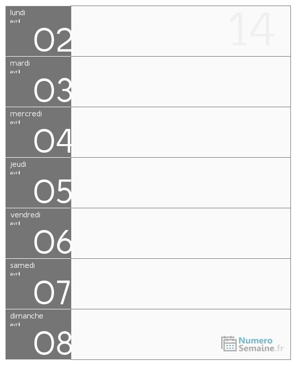 Semaine du lundi 02 avril 2029 au dimanche 08 avril 2029