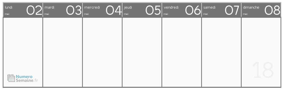 La semaine 18 de 2022 contient les dates suivantes :