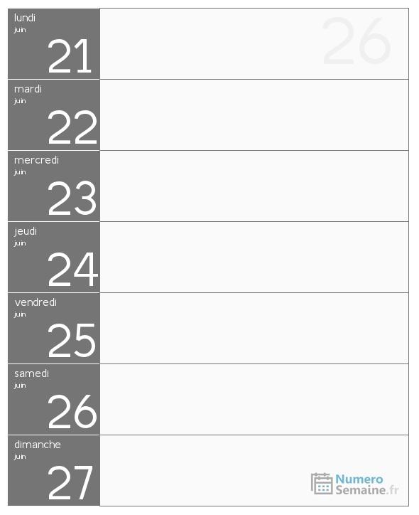 La semaine du lundi 21 juin 2004 au dimanche 27 juin 2004 est la numéro 26 pour l'année 2004. La 26ème semaine de l'année 2004 est numérotée selon la norme ISO-8601 ('International Organization for Standardization).