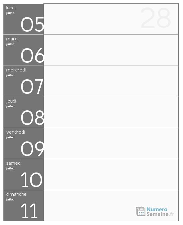 La semaine du lundi 05 juillet 2004 au dimanche 11 juillet 2004 est la numéro 28 pour l'année 2004. La 28ème semaine de l'année 2004 est numérotée selon la norme ISO-8601 ('International Organization for Standardization).
