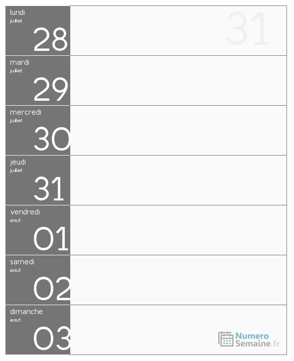 Semaine du lundi 28 juillet 2036 au dimanche 03 août 2036